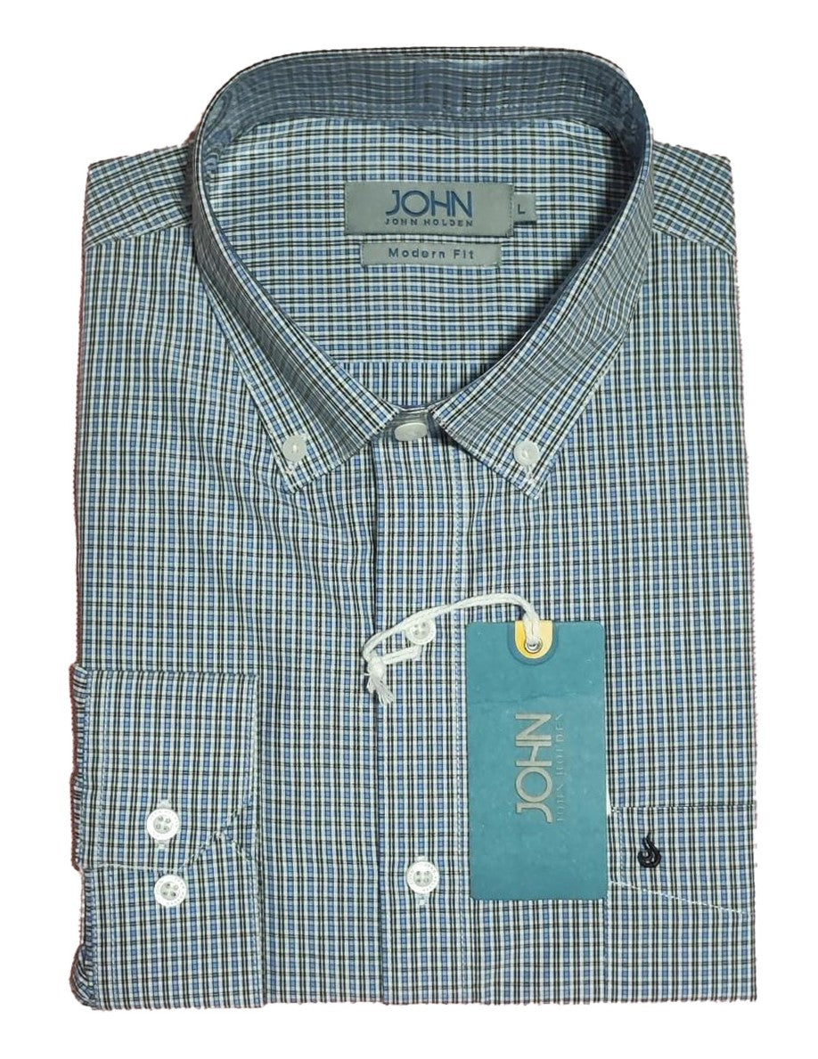 CAMISA JOHN HOLDEN CASUAL 9CML07 CELESTE CUADROS
